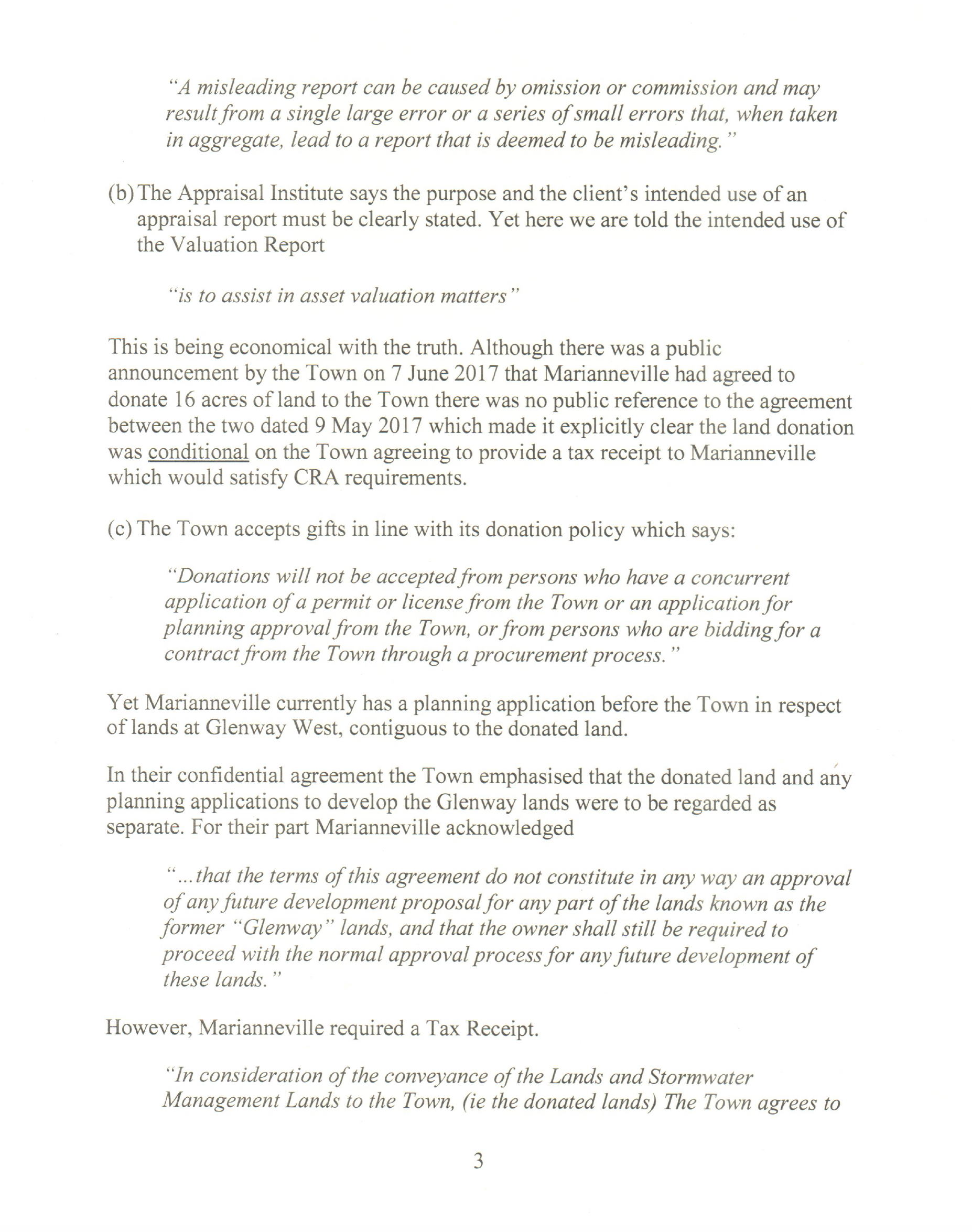 When I asked the Town’s new Chief Administrative Officer, Ian McDougall, to commission a new valuation on the grounds the original one was flawed he told me on 14 April 2022 he would only do so if directed by the Canada Revenue Agency.