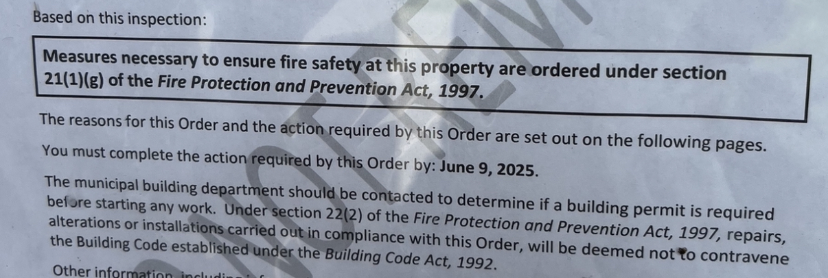 Central York Fire Service first inspected the property on 1 November 2023 with a follow-up visit the next day. An inspection order was posted on 24 November 2023.