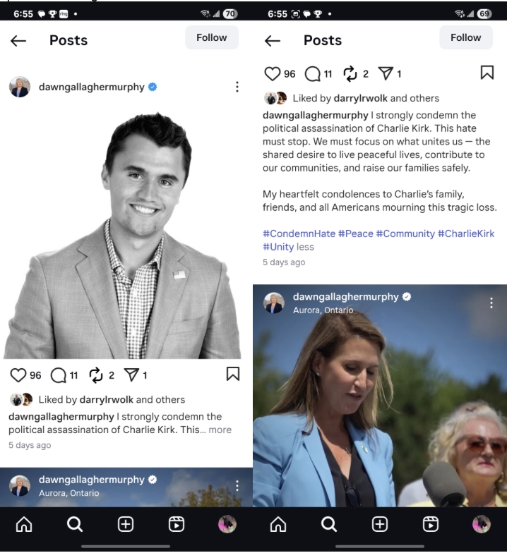 Our MPP, Dawn Gallagher Murphy, was right to condemn the brutal assassination of Charlie Kirk, the right-wing polemicist who revelled in face-to-face debate with those who disagreed with him.