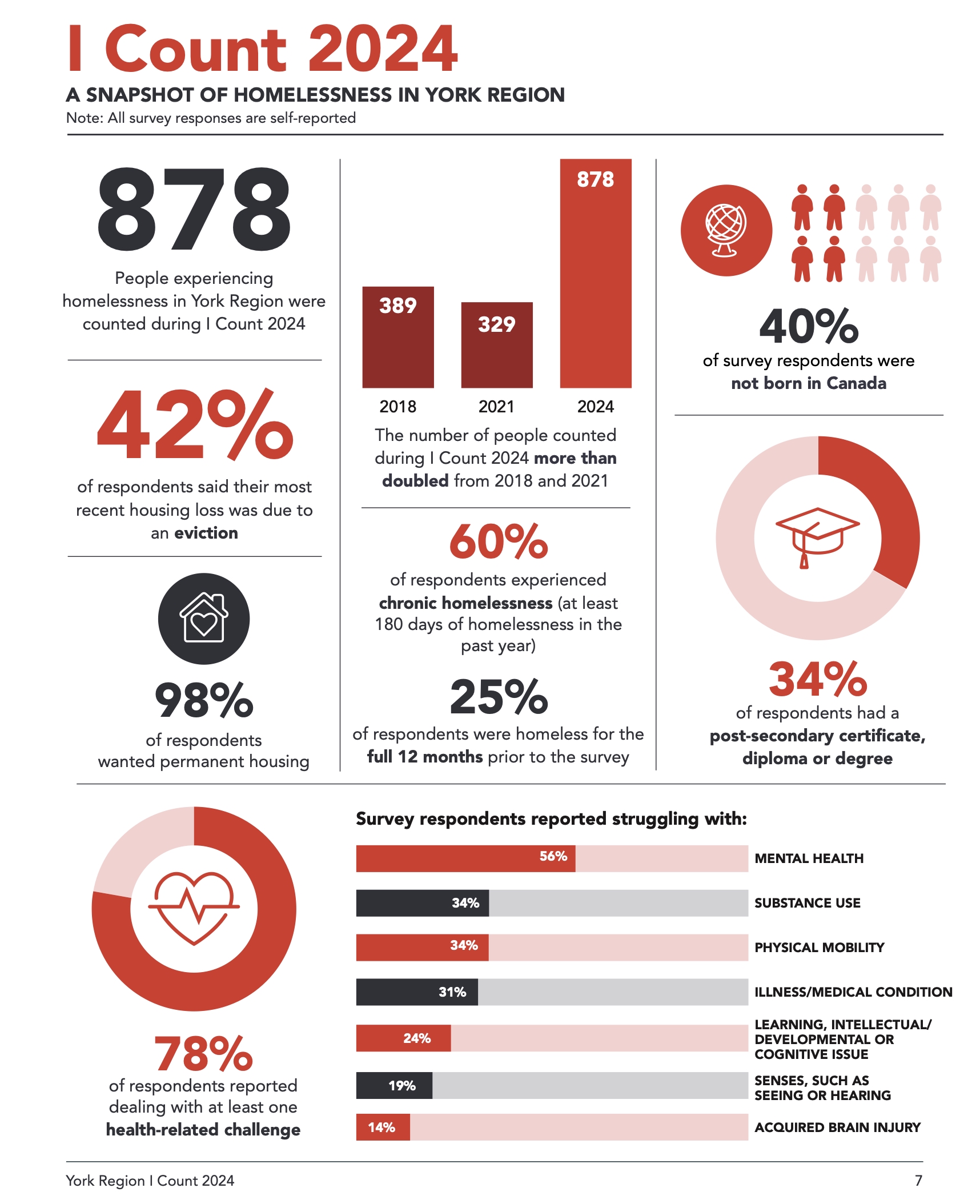 The Count found that 878 people in York Region were experiencing homelessness - a 166% increase compared with the 329 in 2021. Covid is likely to have depressed the count in that year.
