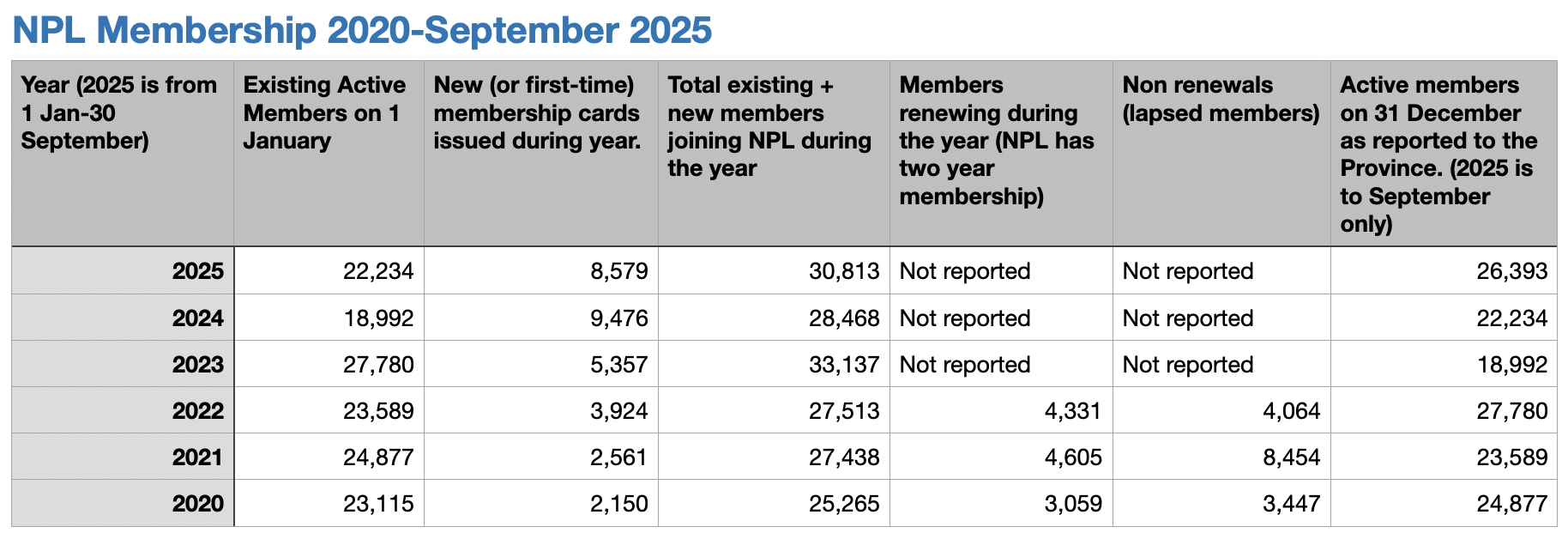These show 26,393 active members at the end of September with three months still to run in 2025. If this trend continues for the rest of the year, this puts active membership on course for a 11 year high - or since on-line records have been posted. It could be the best ever.