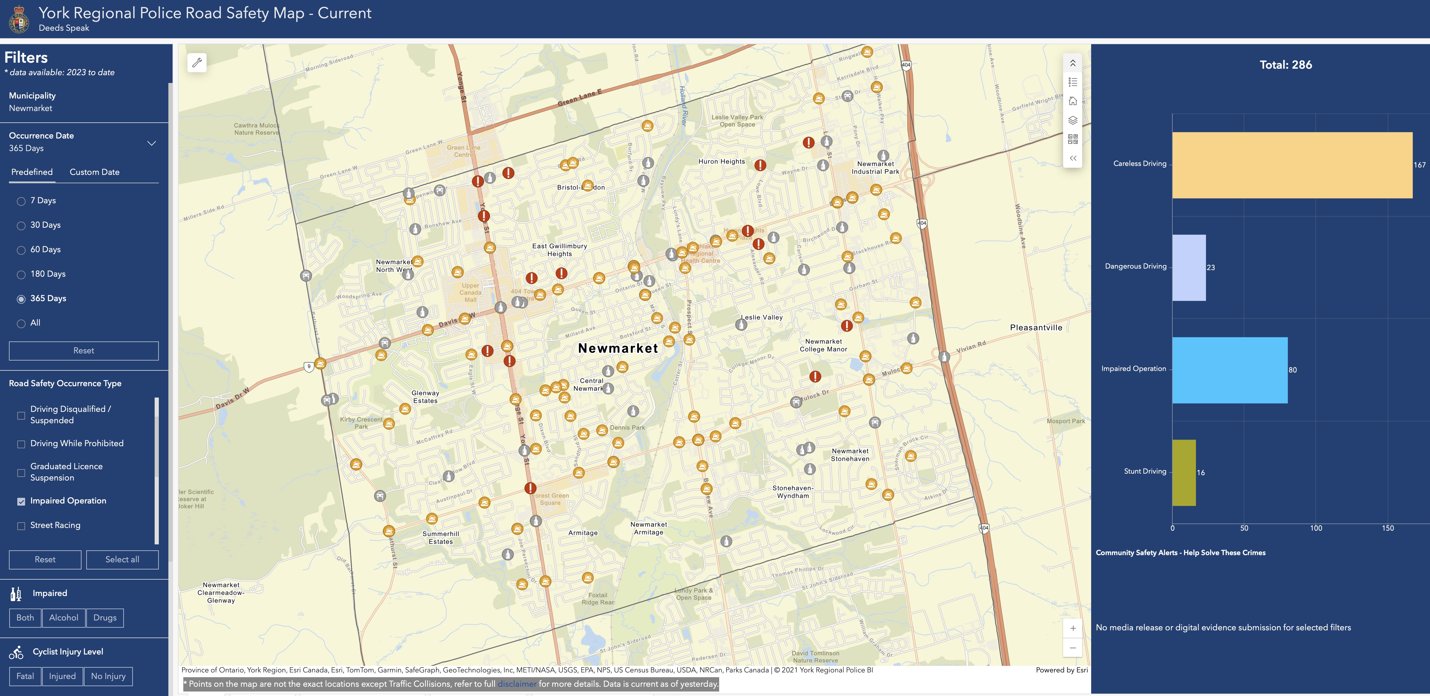 The York Regional Police road safety map for Newmarket shows that over the past year 167 people have been pulled over for careless driving in Town, 80 for impaired driving, 23 for dangerous driving and 16 for stunt driving. And that's just for starters.